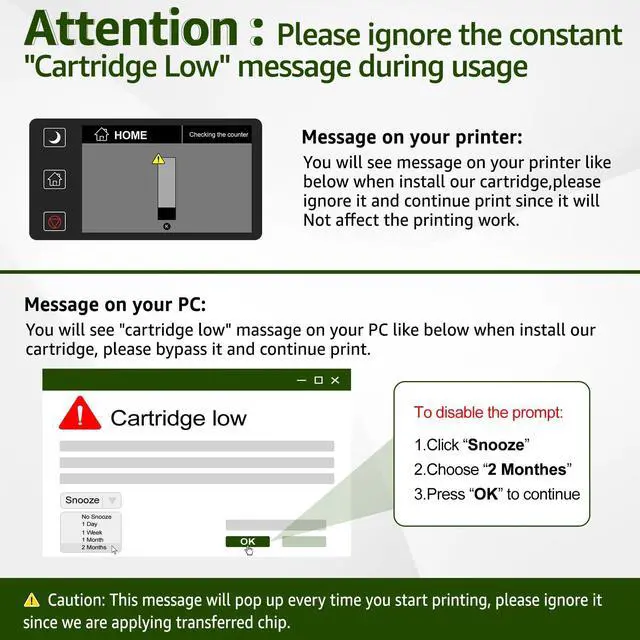 ^^ Low Ink Tips: The printer working with our toner could not show the remaining toner level, but which would not affect the printing and page yield.