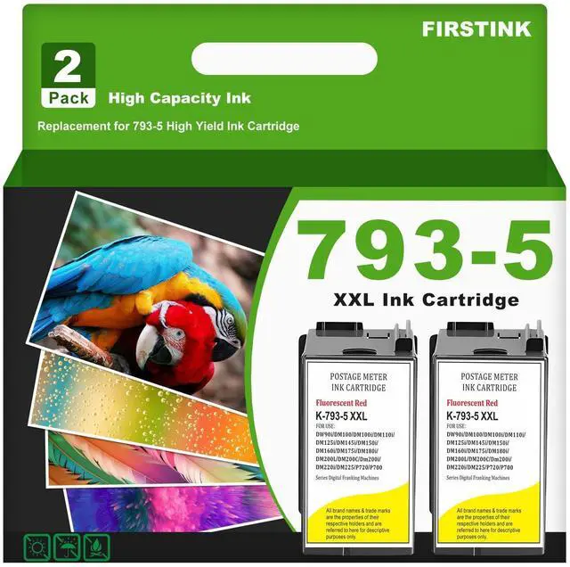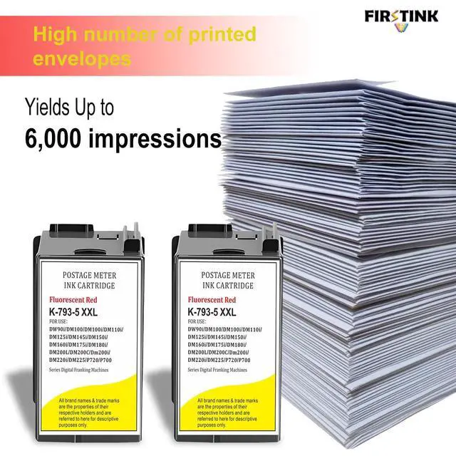 High Capacity 2 Pack SL-793-5 Red Ink Cartridge Postage 793-5 Red Fluorescent Ink Cartridge Replacement for PB P700 DM100 DM100i DM125i DM150i DM175i DM200L DM225 Postage Meter (40ML)
