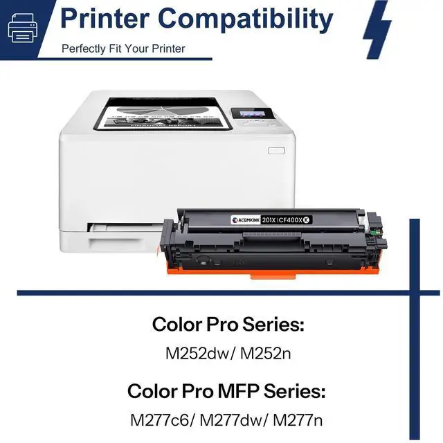 Compatible Printer Models: Color Pro M252dw, M252n; Color Pro MFP M277c6, M277dw, M277n ^^ The page yield of each 201x toner cartridge is up to 2, 800 pages. (Based on up to 15% coverage).