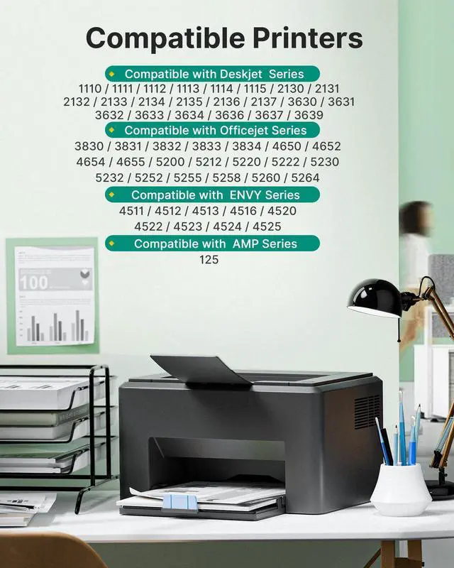 Page Yield: 750 pages per 63xl black ink cartridge for HP Ink 63, meeting your daily office and home printing needs ^^ 63xl black ink cartridge Compatible for HP DeskJet 1110 1111 1112 1113 1114 2130 2131 2132 2133 2134 2136 2137 3630 3631 3632 3633 3634 3635 3636 3640 Printer ^^ 63xl black ink cartridge Compatible for HP ENVY 4510 4511 4512 4513 4516 4517 4520 4522 4523 4524 4525 4526 4527 4528 Printer ^^ 63xl black ink cartridge Compatible for HP OfficeJet 3830 3831 3832 3833 3834 4650 4652 4654 4655 4656 4657 4658 5200 5220 5230 5232 5252 5255 5258 5267 Printer ^^