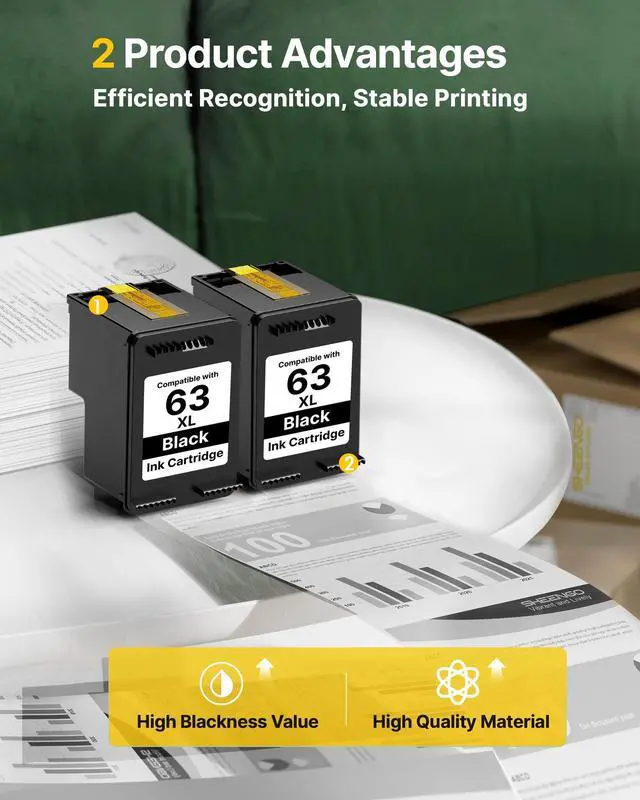 Quality Assurance: Outstanding reliability, easy to install and use. Free replacements of 63xl black ink cartridge for hp ink 63 will be sent if there're any quality issues within 2 years warranty