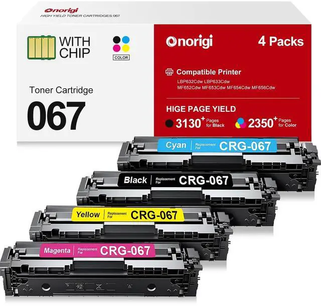 Package Includes: 4 Color canon mf654cdw toner cartridge Replacement for Canon 067 Toner Cartridge (1 x cartridge 067 Black, 1 x cartridge 067 Cyan, 1 x cartridge 067 Yellow, 1 x cartridge 067 Magenta. )