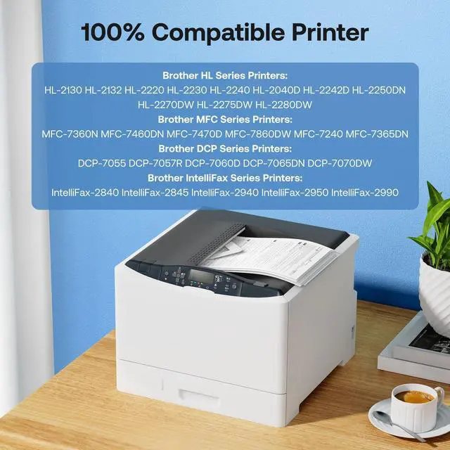 Compatible Printers: Compatible for Brother HL-2130, HL-2132, HL-2220, HL-2230, HL-2240, HL-2240D, HL-2242D, HL-2250DN, HL-2270DW, HL-2275DW, HL-2280DW; MFC-7240 MFC-7360N MFC-7460DN MFC-7470 MFC-7860DW; DCP-7060D DCP-7065DN DCP-7070; Intellifax-2840, IntelliFAX-2940 ^^