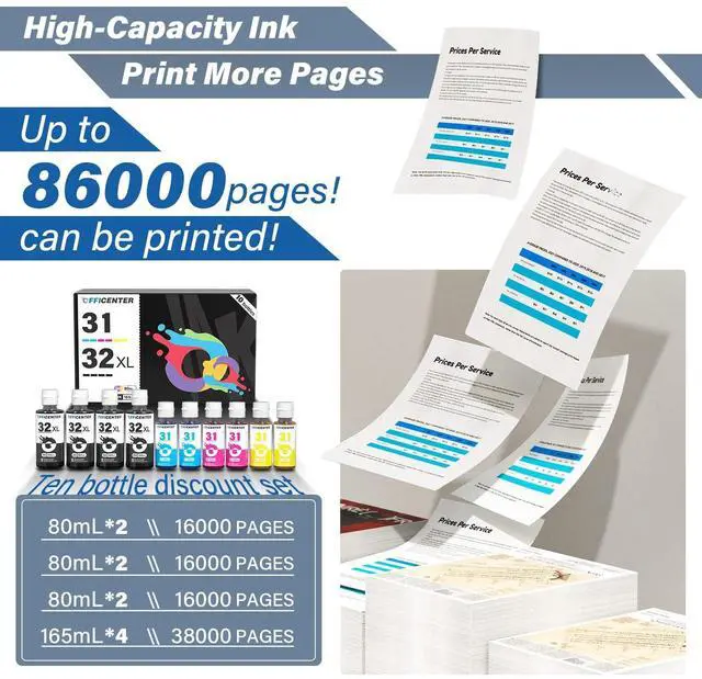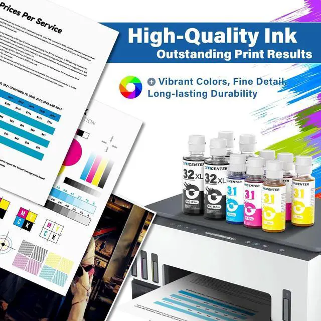 High-quality printing: 32xl black ink bottle uses pigment ink, 31 ink bottle set uses dye ink, both of which have been rigorously tested to ensure pure and realistic colors and bright printing effects ^^