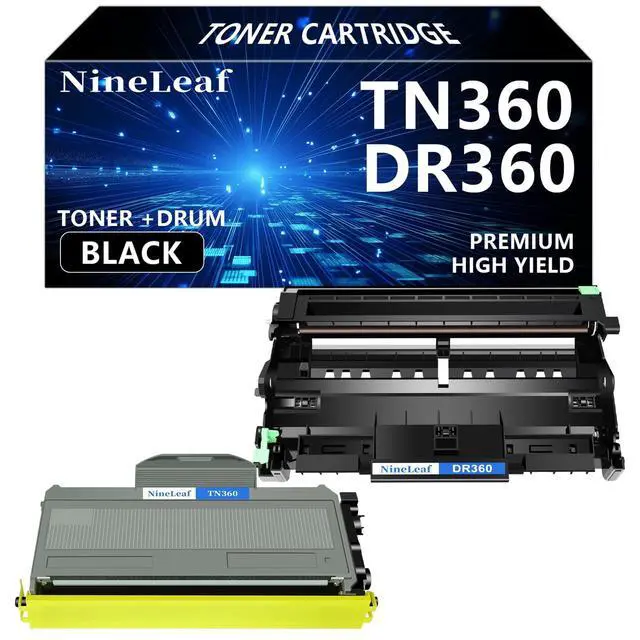 NineLeaf Compatible (1 Drum + 1 Toners) Replacement for TN360 TN-360 Toner Cartridge + DR360 Drum Set DCP-7030 DCP-7040 HL-2140 2150N HL-2170W MFC-7340 MFC-7840W 7440N MFC-7345N Printer