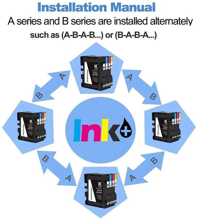 INK+ New Sublimation Ink Cartridge Compatible With Sawgrass Virtuoso SG500 SG1000 Printers (1 Black, 1 Cyan, 1 Magenta, 1 Yellow, 4-Pack) Version BWe are an integrated factory specializing in the production and sales of printing consumables with 6 years of experience. We attach great importance to the quality of our products, and always take customer experience as the first standard. 1.