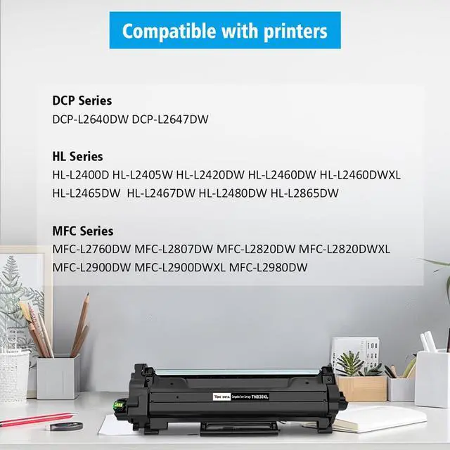 Item Content: TN830XL TN-830XL Compatible Toner Cartridge Black. Our Compatible Toner Cartridges are another choice for the other TN830 TN-830 TN-830XL TN830XL toner cartridges. Our TN830XL TN-830XL Compatible Toner Cartridge Works with DR830 DR-830 Drum Cartridge Drum Unit Imaging Drum. ^^