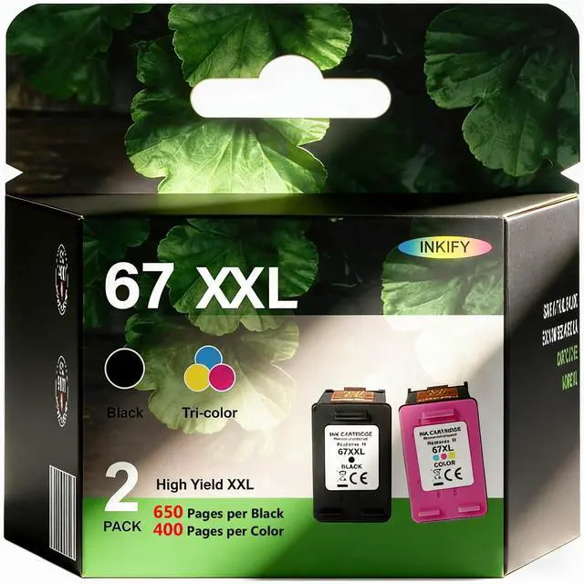 Package Content: INKIFY Compatible for HP 67 XL Ink Cartridge Combo Pack and Compatible for HP 67 XL Ink Cartridges Black color Combo Pack (1 67XL Black, 1 67XL Tri-color ^^
