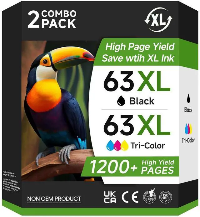 Package Content: for HP printer ink 63 replacement for HP ink 63XL black and color combo pack (1 63XL black ink cartridge, 1 63XL color ink cartridge, Combo Pack) ^^ "XL"
