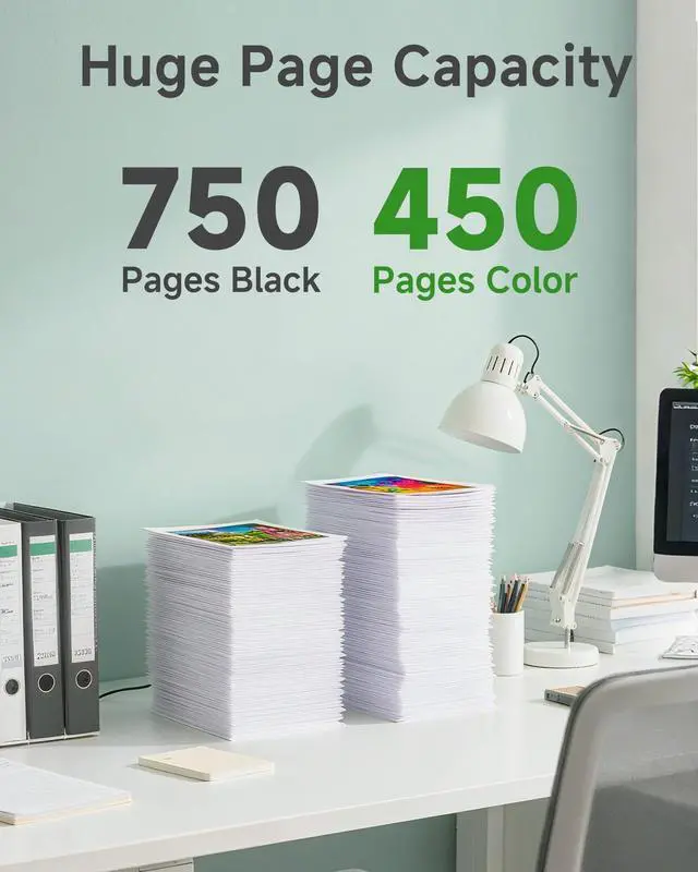 High-Yield Capacity: Up to 750 pages per 63 black ink cartridge and 450 pages per 63 color ink cartridge (at 5% coverage, based on ISO standard testing using A4 paper) ^^