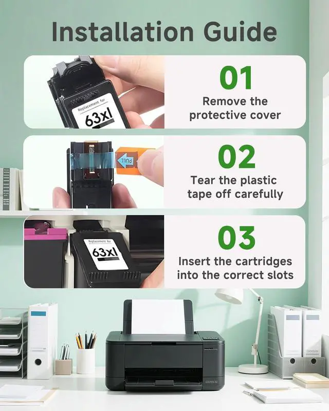 Advanced Chip Technology: Featuring the latest upgraded chips, our ink cartridges for hp printers 63 XL ensure efficient printer recognition and stable, trouble-free printing ^^