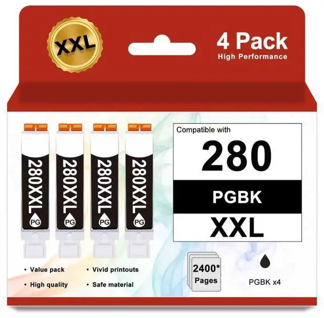 • Package Contents: 4 x Large Black 280xxl black ink cartridges for printers, total 4 pack 280xxl black PGBK ink cartridges.