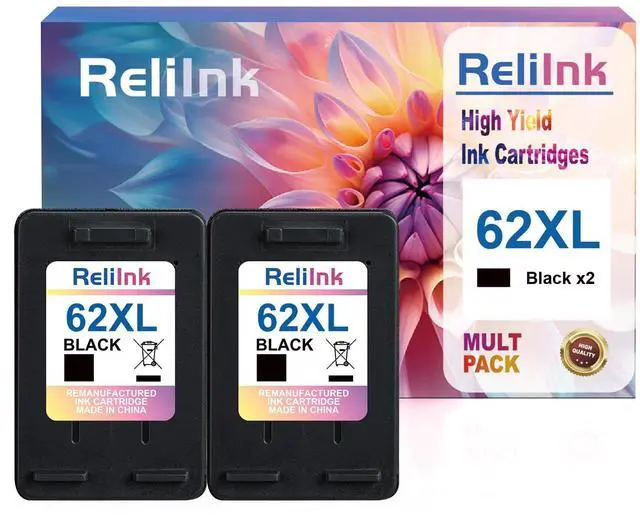 High Page Yield: ReliInk for hp 62xl ink cartridge combo pack deliver long-lasting printing for home, school and office. Each for hp 62 black ink cartridge prints up to 600 pages, reducing the need for frequent replacements. ReliInk for hp62xl black ink cartridge is perfect for students, offices, and busy households who need consistent quality. Enjoy dependable printing from the first page to the last with this for hp ink cartridge 62.
