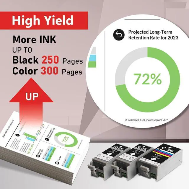 High Page Yield & Value: Up to 250 pages for per canon pgi-35 black ink cartridge and up to 300 pages for canon cli36 ink cartridges. (Based on 5% on A4 paper) ^^