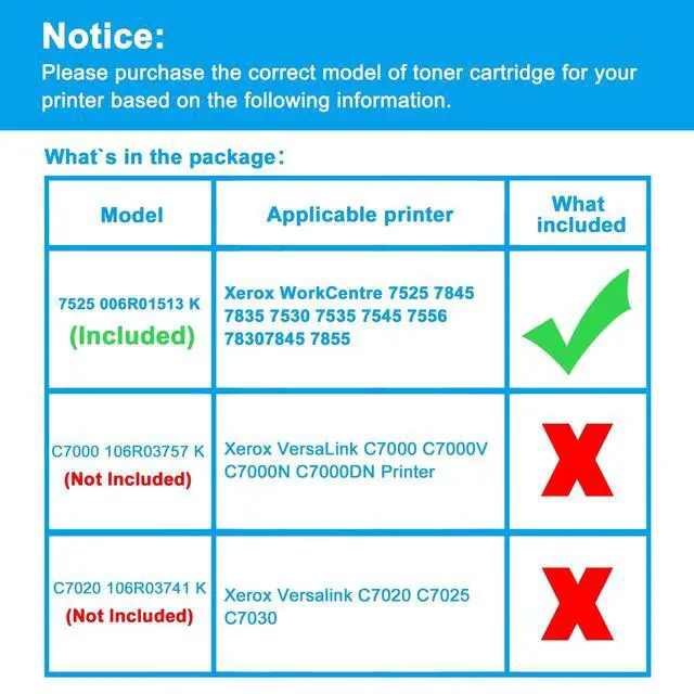 ^^ Compatible Printers: Replacement for Xerox WorkCentre 7525 7845 7835 7530 7535 7545 7556 7830 7845 7855 ^^