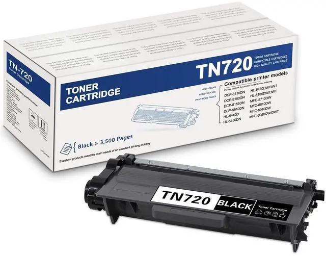 Compatible with: HL-5440D HL-5450DN HL-5470DW HL-5470DWT HL-6180DW HL-6180DWT DCP-8110DN DCP-8150DN DCP-8155DN DCP-8510DN MFC-8710DW MFC-8810DW MFC-8910DW MFC-8950DW MFC-8950DWT Printer ^^ TN720 Toner Cartridges are of high-quality, reliable printing and save time by avoiding common printing problems, a replacement or refund is available for any usage issue ^^