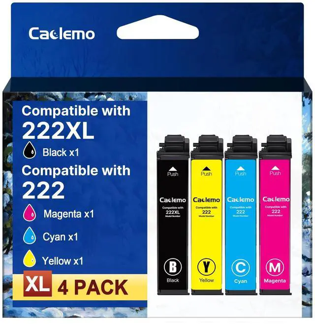 What's in the Box: Remanufactured for epson 222xl ink cartridges combo pack include 1 x Black 222 ink cartridges, 1 x Cyan 222 ink cartridges, 1 x Magenta 222 ink cartridges, 1 x Yellow 222 ink cartridges ^^ 5.