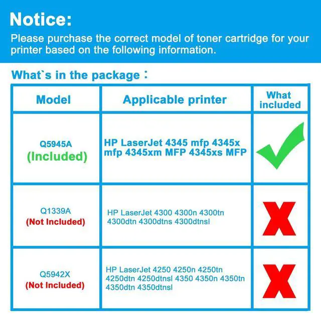 Compatible Printers: Replacement for HP LaserJet 4345 mfp 4345x mfp 4345xm MFP 4345xs MFP ^^