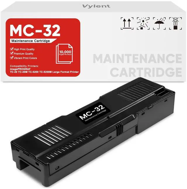 Vylent MC-32 Maintenance Cartridge MC32 Ink Maintenance Box Replacement for Canon MC-32 Maintenance Cartridge for imagePROGRAF TC-20 TC-20M TC-5200 TC-5200M Large Format Printer 1-Pack