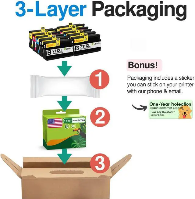 Get reliable printing performance, at a fair price. Our cartridges are tested to ensure consistent, quality prints that match the image/text seen on one's printer both at the component level and with print tests. ^^ Customer protection you can trust. Our goal is for our customers to be 100 percent satisfied. You are fully protected by our 1-year warranty with either replacement or refund. Our U. S. customer support team is available 24/7 for any questions by clicking on our store name (Bordeaux Tech) above the bullet section, and clicking on 'Ask a question' on the top-right side.