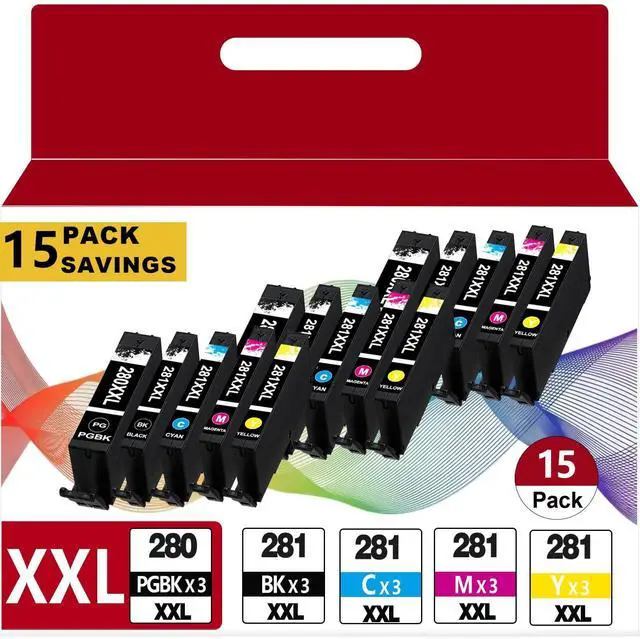 & 281XXL cartridges: 3 PGI-280XXL (Large Black), 3 CLI-281XXL Black, 3 CLI-281XXL Cyan, 3 CLI-281XXL Magenta, 3 CLI-281XXL Yellowideal for heavy printing needs. ^^ 2. Broad Compatibility These 280/281 ink cartridges are fully compatible with a wide range of printers, including TR8620a, TR8620, TR8600, TR8622, TR8622a, TR8520, TR8500, TR7520, TR7500, TR7620, TS6120, TS6220, TS6320, TS9520, TS9521C, TS702, TS702a, TS9120, TS8320, TS8120, and TS8220. ^^ 3. Reliable Quality & Vivid Output Starink premium replacement cartridges for 280/281 deliver consistent performance with crisp text and vibrant color reproduction. Designed for long-lasting prints at a lower cost per page, making them an economical option for daily home and office use. ^^ 4. High Page Yield Each PGBK 280XXL prints up to 600 pages; each 281 Black prints up to 360 pages; each Cyan/Magenta/Yellow 281XXL prints up to 830 pages (based on 5% A4 coverage). High-capacity ink reduces replacement frequency and supports large-volume printing tasks. ^^ 5. Upgraded Chips & Strict Quality Assurance Equipped with the latest updated chips for seamless recognition and smooth operation.