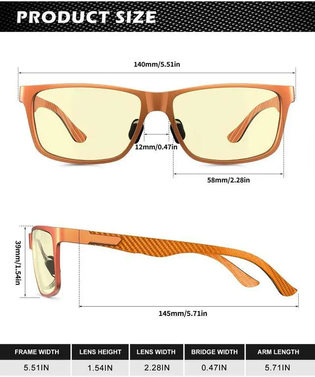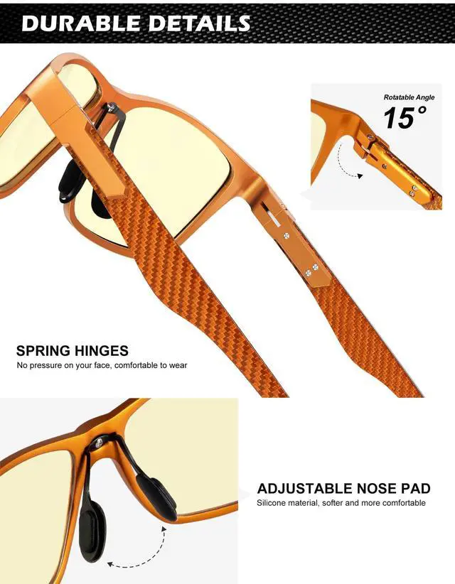 ^^ Premium Temple Material: With superior Al-Mg and carbon fiber composite temple, this type of blue light blocking glasses for men is ultra-light than pure metal frame, also more sturdy. No more worries about broken temples. As more suitable for anyone who often work or play games by the computer, do not miss this pair of practical and classic blue blocker glasses. ^^ Take Care of