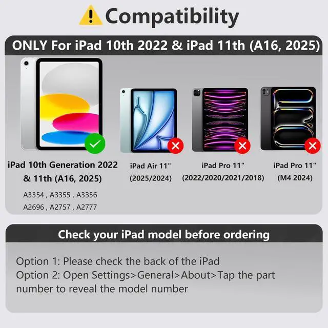 Generation 2025 (Models: A3354, A3355, A3356), Please check the model number ("Axxxx") on the back of your iPad before purchasing to ensure compatibility.
