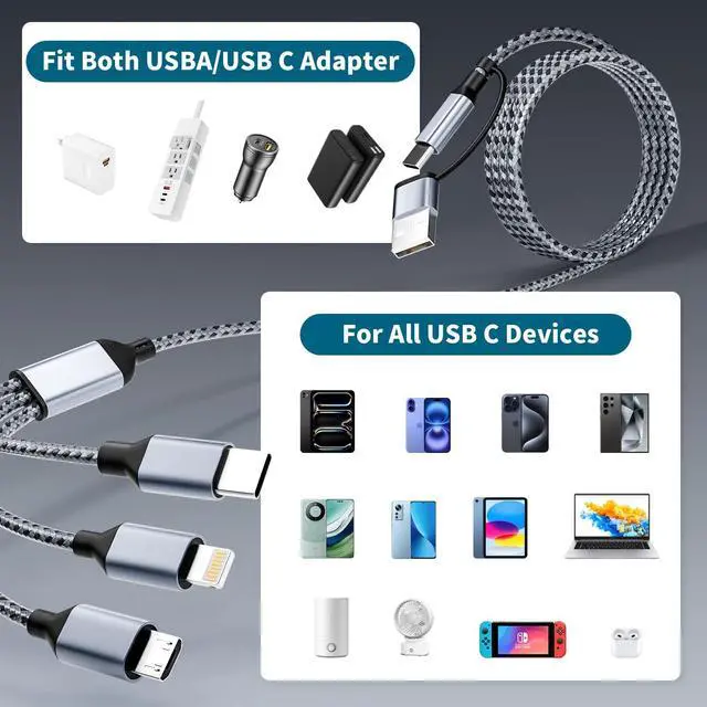 Safe Charging is Above All: This usb to multi charging cable is adopted Thickened Tinned copper wire to ensure safe and reliable charging. The high-quality aluminum housing makes the multi charger cords resistant to heat and corrosion.
