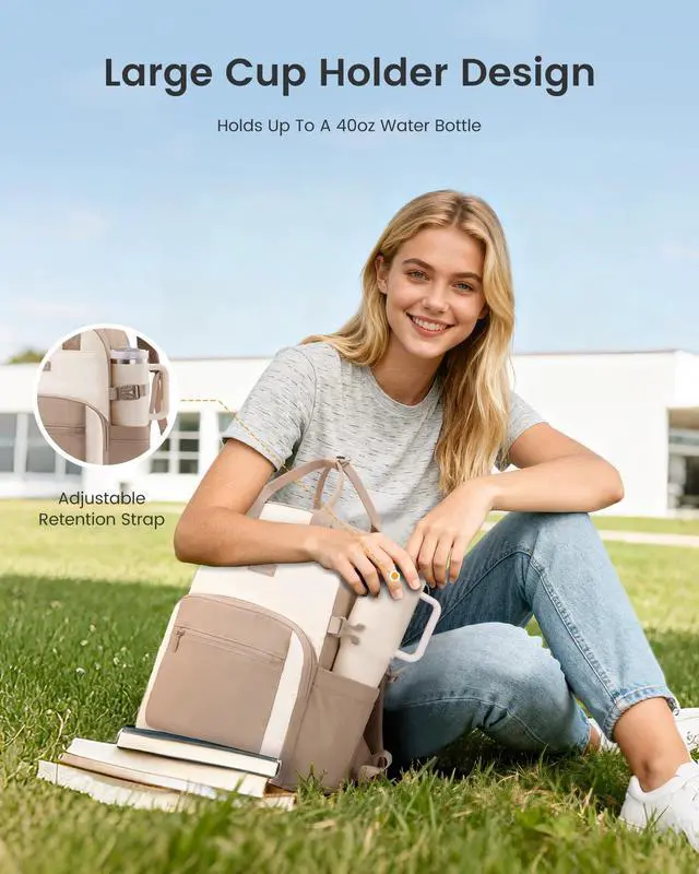 • Dual Elastic Side Pockets for Large Water Bottles: Equipped with two elastic side pocket capable of holding large water bottles or thermoses up to 40oz, this backpack ensures you stay hydrated throughout your busy day. The innovative cup holder design keeps your bottle stable, preventing spills while providing easy access whenever you need a drink. Whether commuting, working, or traveling, it's the perfect companion for staying hydrated hands-free.