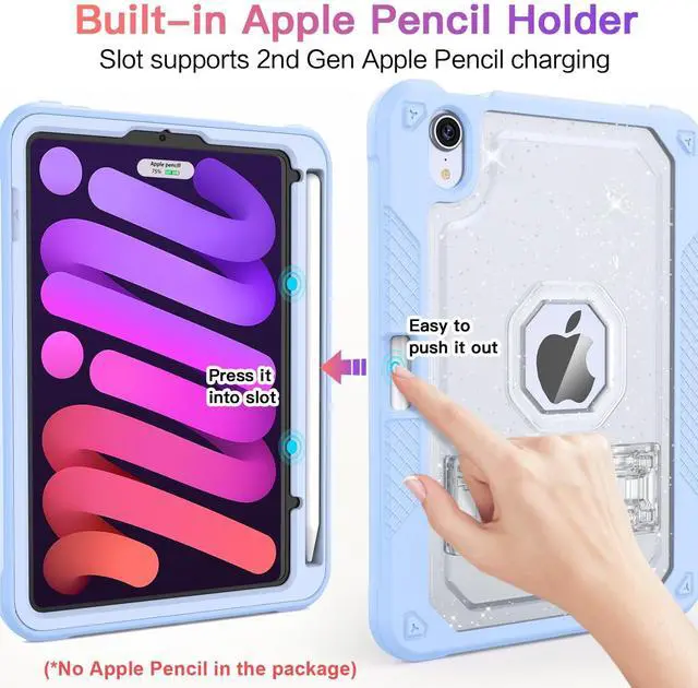 [Compatibility]- ZoneFoker clear tablet case is only compatible with Apple iPad Mini 7th generation 2024 (A17 Pro) and Mini 6th generation 2021 8.3 -inch (Model number: A2993/A2995/A2996/A2567/A2568/A2569). Will NOT fit any other iPad. ^^ [Supports for Apple Penciln] Built-in Slot, Allows for Apple Pencil magnetic wireless charging technique without removing the case. Apple pencil can be carried anywhere at any time. Not Inclued Apple Pencil ^^ [See-Through Design]- Simple design makes of classic look, translucent back shows off your iPad 6 Mini 8.3 inch while giving it ultimate protection, deal for office clerk and students. ^^ [Precise Cutouts]- It's easy to access all buttons, Touch IDspeakers, cameras and sensors, all the ports are where they should be. It's also worth offering a beautiful gift choice for your family and friends, too. ^^ [Shockproof Rugged Design]- 2 In 1 structure of hybrid material backplane and hard front casing effectively protects your iPad mini from scratches, accidental drops, bumps, and impacts.