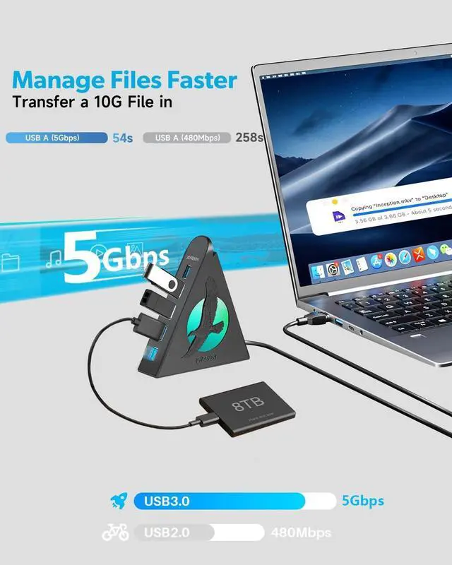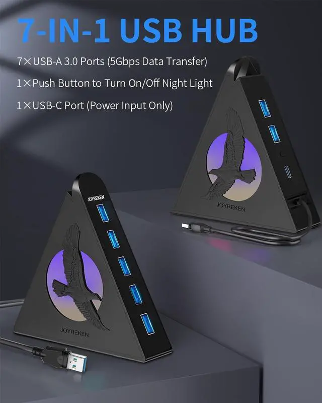 7 Port USB Hub: This 7-port USB 3.0 data hub can instantly expand one of your computer's USB ports into seven external USB 3.0 data ports for keyboard, mouse, printer, flash drive, thumb drive, hard drivers and other USB devices, transforming a single USB port into a full work station. (This hub is not designed to charge devices. )