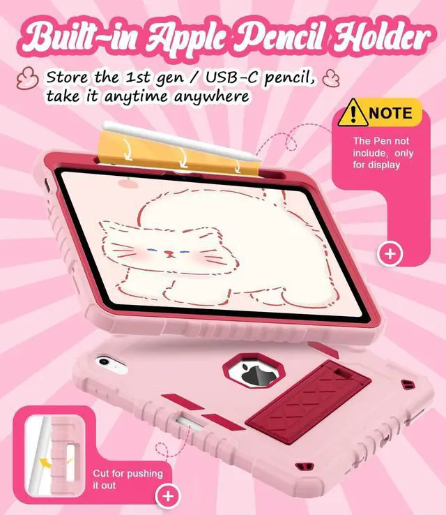 ^^ Built-in kickstand: Slide the back stand to a fixed position, flip and place the iPad to select a vertical or horizontal reading and browsing angle ^^ Supports to Apple Pencil- Easy to take and place pencil in the slot whenever you need (Not Inclued Pencil) (May not be suitable for pencils from other brands) ^^