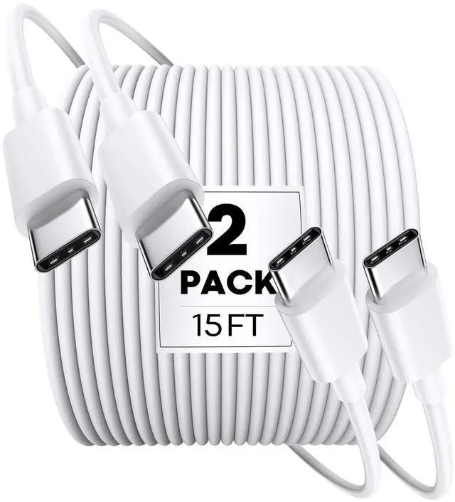 2 Pack USB C to USB C Cable 15FT, 60W Fast Charging Extra Long USBC to USBC Charger Cord