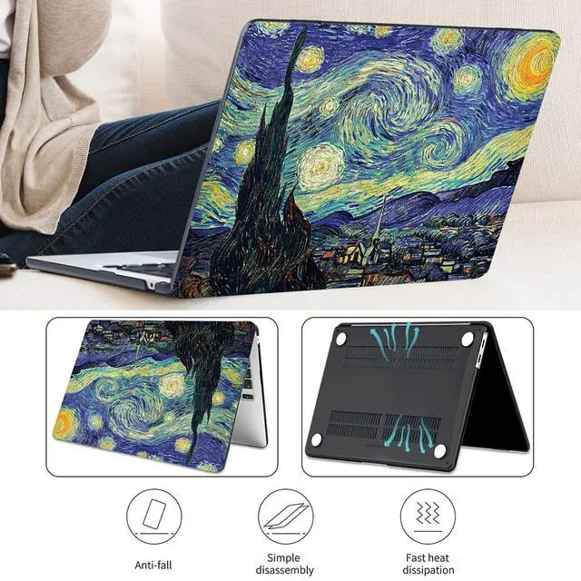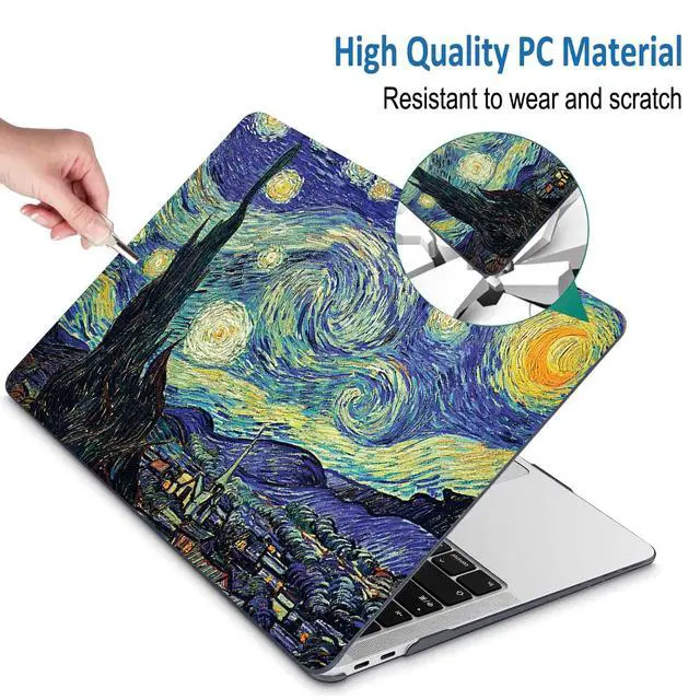 QCzyc Compatible with MacBook Air 13 Inch Case 2022, 2021-2018 A2337 M1 A1932 A2179 Durable Hard Plastic Shell Case &Keyboard Cover&Mac OS Keyboard Sticker (Van Gogh Starry Sky)