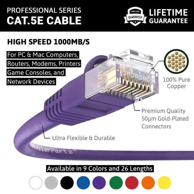 InstallerParts (10 Pack Ethernet Cable CAT5E Cable UTP Booted 5 FT - Purple - Professional Series - 1Gigabit/Sec Network/Internet Cable, 350MHZ
