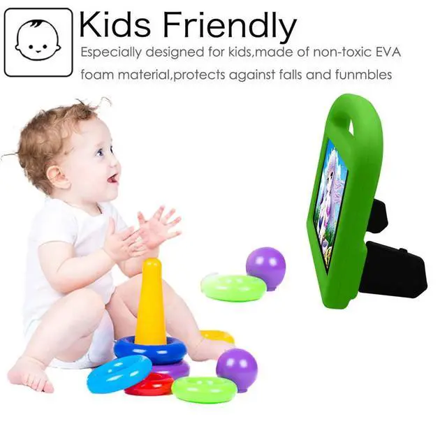Features: Shock ProtectionMade of sturdy kid-safe EVA foam to protect your tablet from daily bumps and scrapes. Precise CutoutsCustomized openings allow to access to all ports, buttons and cameras without removing the case. Top HandleLarge handle is designed for an easy and comfortable grip, and convenient for carrying outdoors. Stable StandBuilt-in 2 folded bases to prop your tablet up on the desk for hands-free horizontal viewing or typing.