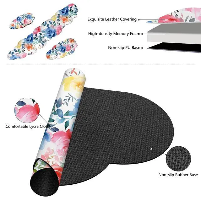 4-in-1 Cloud Wrist Rest SetIncluded 1pcs XXL cloud mouse pad measures 35.4 x 15.7 inches for providing ample room to fit your gaming mouse full-size mechanical keyboard and other desk items, 1pcs cloud keyboard wrist rest for keyboard, 1pcs cloud mouse wrist rest pad for mouse, 1pcs cloud cup pad for cup ^^ Ultra-smooth Surface XXL Cloud Mouse Pad is made of Premium-textured and smooth lycra cloth surface that the mouse glides over nicely, it is optimized for fast movement while maintaining excellent speed and control, great for daily work or gaming ^^ Savior of Wrist PainThe comfortable memory foam-filled cushion and ergonomic structure conform to your wrist for maximum comfort and support, it reduces wrist irritation and wrist pain, helps treat and prevent carpal tunnel syndrome ^^ Anti-slip Rubber BaseDense anti-slip rubber base provides heavy grip preventing sliding or movement of mouse pads, available for any flat, hard, tabletop surface.
