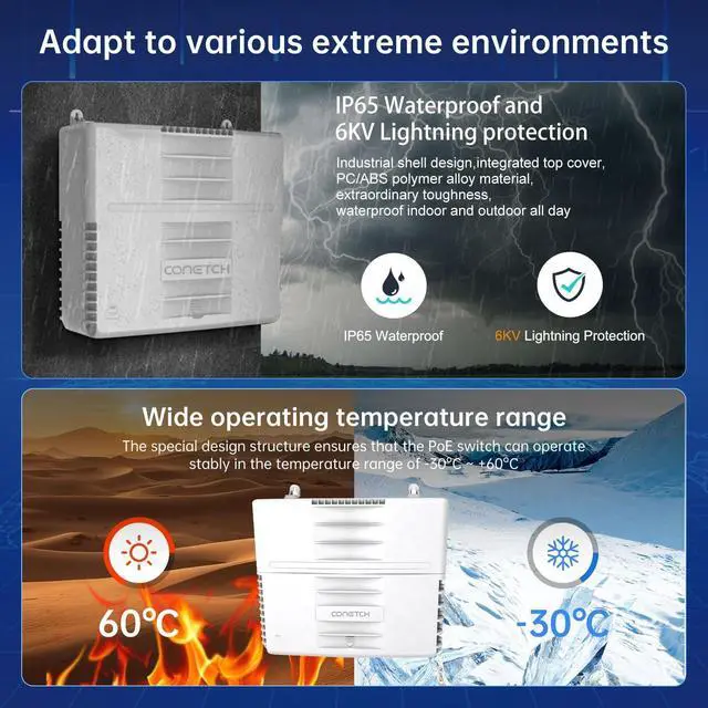 ^^ Stable and Security: 6KV lightning protection, 8KV Electro-Static discharge Protection, wide temperature range -30C~60C, stable operation, easy to maintain network status. Unmanaged plug-and-play ethernet switch, setup with no software to install or configuration needed. If you have any questions, please contact our official support and we will provide the best after-sales service.
