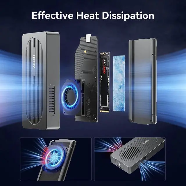 ^^ Advanced Thermal Management: Zero Throttling with Active Cooling - Precision aluminum enclosure + auto fan (55C on/40C off) + thermal pads keep your NVMe enclosure cool. Manual override for sustained high-speed operation during extended use.