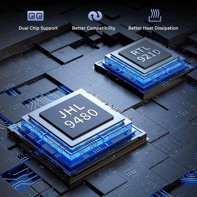 Intel JHL9480 Chipset for Ultra-Stable M. 2 NVMe SSD Enclosure Performance - Powers seamless USB protocol translation, ensuring 80Gbps speeds and rock-solid stability for your external NVMe enclosure. No lag during intensive workflows.