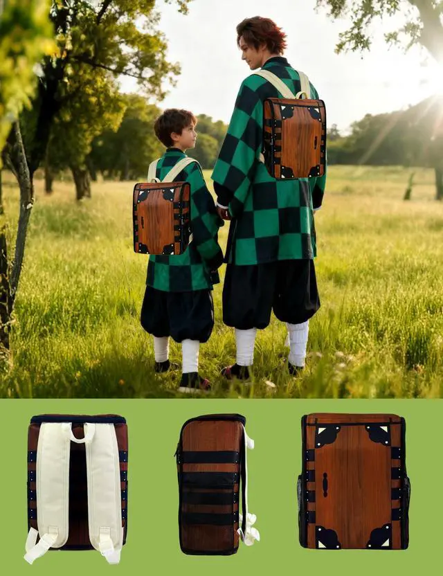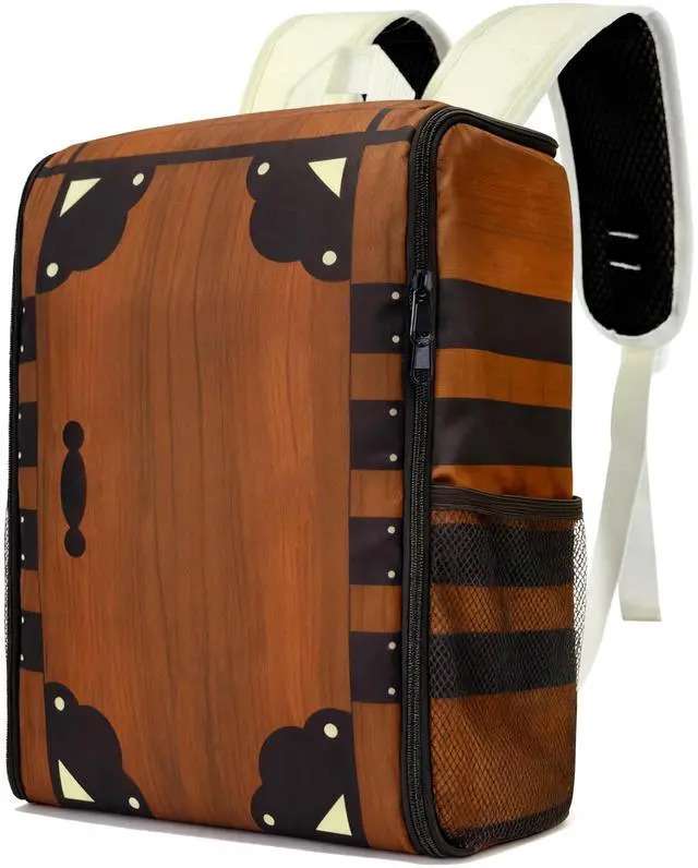 Lining and outside are made of wear-resistant polyester, there is a layer of padding, and the bottom is padding supported, easily keep the wooden box shape of the backpack. ^^ Design with HeartWith breathable and adjustable padded shoulder straps relieve the stress of shoulder. Smooth double zippers with wide-opening design allow quick and easy access to items. Polyester top handle for the long time carry on using. ^^ Great Gift & Multi-use As ideal accessory of cosplay, make you the focus in daily dress-up or Halloween. Also can be used in school, outdoor, sports, camping, hiking, travel and other occasions, this is a great gift backpack.