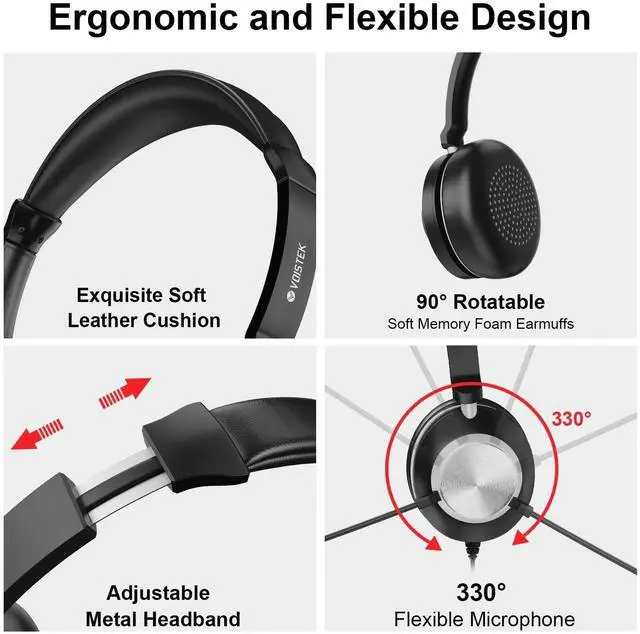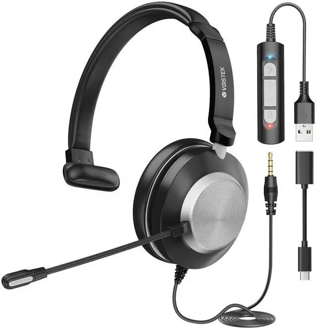 Clear Audio with 40mm DriverThis single-ear headset features a 40mm speaker that delivers crisp and balanced sound, ideal for calls, virtual meetings, and online classes. Perfect for professionals who need to stay aware of their surroundings. ^^ Rotatable Noise-Canceling MicrophoneEquipped with a 330 rotatable noise-canceling microphone that can be worn on either left or right ear. Delivers clear voice quality for Teams, Skype, Zoom, and phone answering in noisy environments. ^^ Comfortable Single-Ear DesignThe lightweight on-ear design with soft ear cushion and adjustable headband ensures long-term comfort. Ideal for customer service, call centers, or multitasking at home or in the office.