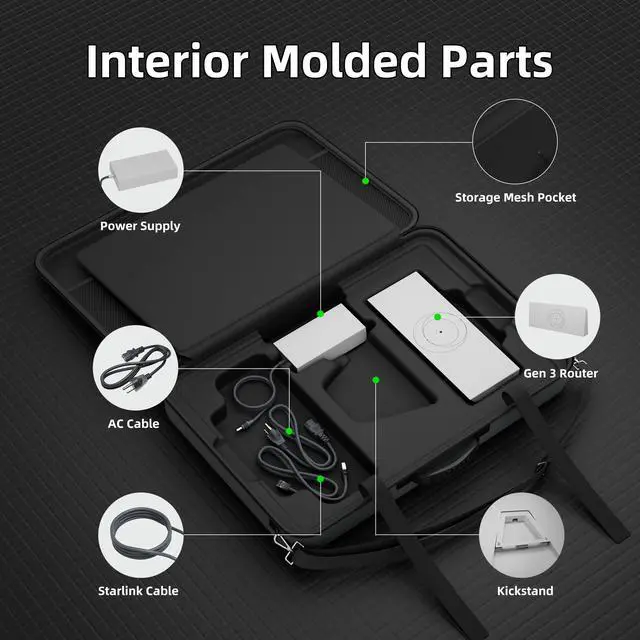 Standard: The compartments inside the Starlink case Gen 3 are designed according to the real Starlink Gen 3 Standard, perfectly protecting the Starlink Gen 3 Standard Dish and accessories. Each item has a dedicated location for easy access and efficient installation. ^^ Convenient and