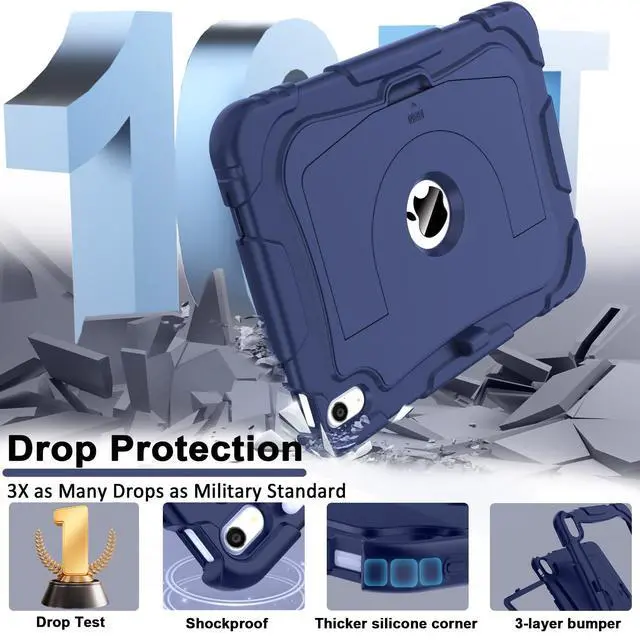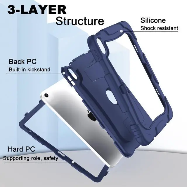 NOTE: This case does NOT include a built-in screen protector. ^^ Lager&Harder KickstandThis ipad 11th generation case kickstand features a dual-angle viewing with a reinforced, larger design for stronger stability, ensuring your iPad stays secure wherever you want to use it. Meanwhile, you can simply pop out the kickstand vertically to use it as a handle. This allows you to lift and transport the device effortlessly whenever required. ^^ Efficient Protection The 3-in-1 ipad case 11th generation has successfully passed the military collision test. It is made of high-quality silicone shell and durable hard PC back and front frame, which can effectively mitigates damage to your iPad caused by high-altitude drops, accidental falls, violent collisions. ^^ Precise Cutouts All controls of ipad a16 case are easily accessible for all iPad functions without removing your iPad from the case. The raised edges keep the screen and camera elevated to prevent scratches on surfaces. And the pen holder design provides a secure place for your pens to rest. ^^ Tester SayThe testers found the iPad case to be exceptionally durable, they appreciated the availability of various colors.
