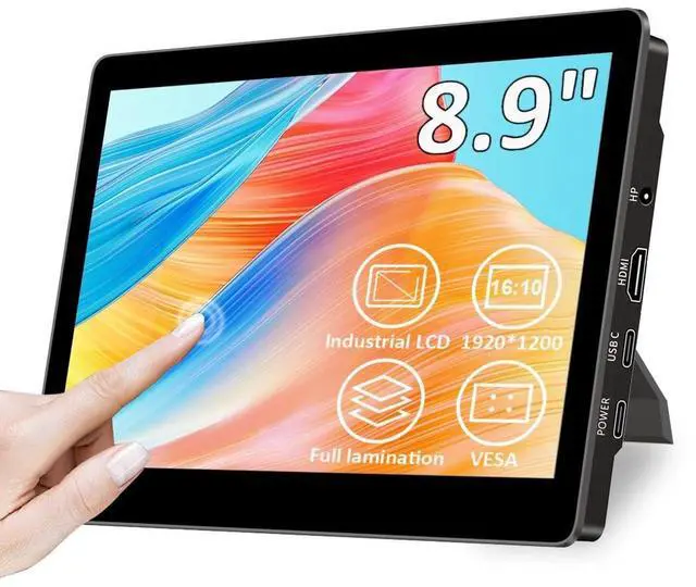 Magedok 8.9 inch Touch Monitor with Stand^^ 1920 * 1200 ^^16:10^^450Nits^^Optical Bonding^^ HDMI/USB-C Port^^Small Monitor for Mini PC Laptop Mac mini