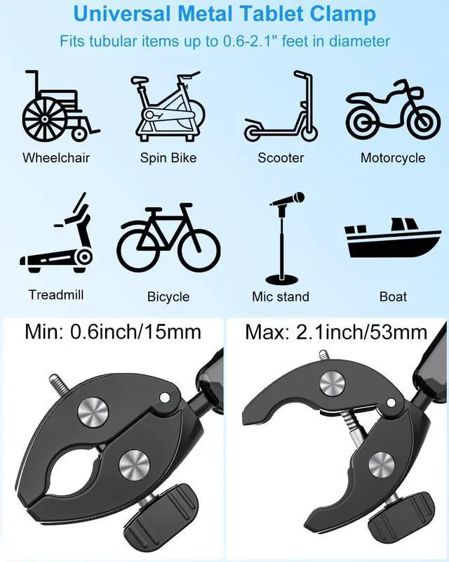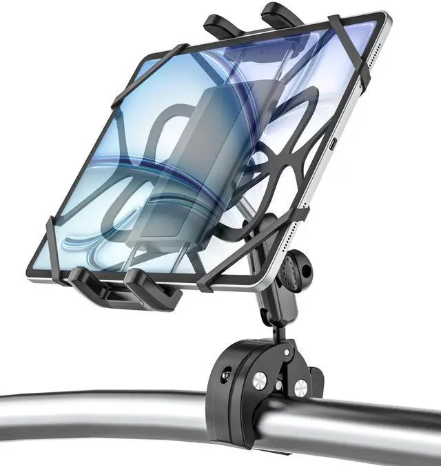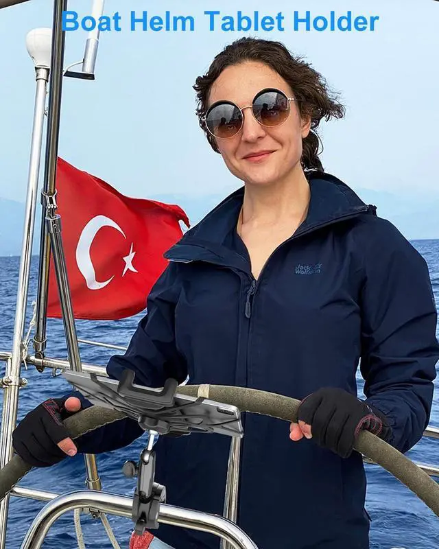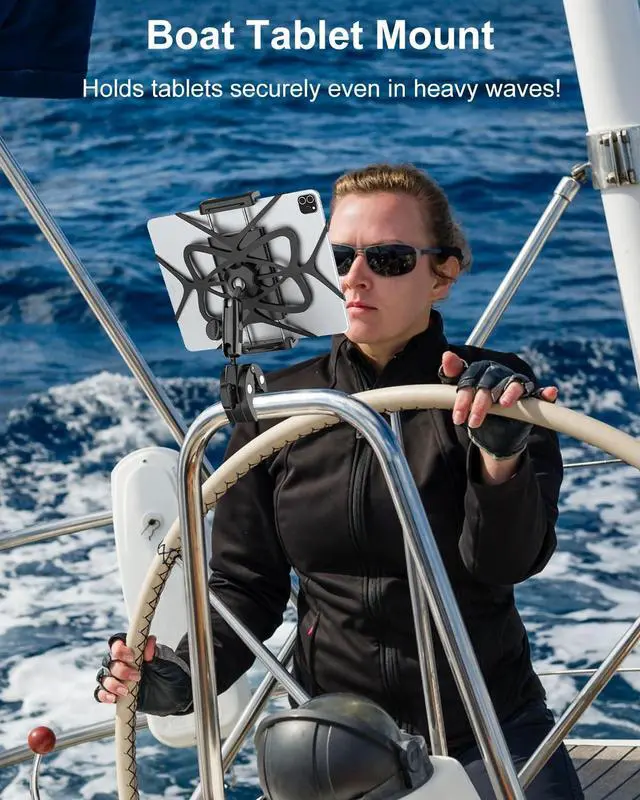 [Excellent Tablet Protection] The boat ipad holder adopts soft and flexible silicone net, which can firmly hold your tablet, even if the speedboat is moving fast, the tablet can be firmly fixed on the boat handlebar and will not fall off ^^ [Adjustable Clamp] The boat helm tablet holder features an adjustable clamp base designed to fit handlebars, poles, and tubes with a diameter range of 0.5 ''- 1.6 ''. It's perfect for use with spin bikes, treadmills, ellipticals, and various fitness equipment, as well as for securing devices on tripods, strollers, wheelchair, golf carts, and more ^^ [Versatile Angle Adjustment] The ipad mount for boat features a flexible metal arm with three 360 rotating spherical joints, allowing complete adjustability for the perfect viewing angle, ensuring a seamless experience on the water ^^ [Durable Metal Materials] Crafted from high quality aluminum materials, this boat helm ipad mount is built to withstand harsh marine environments, ensuring longevity and dependability on all your aquatic excursions ^^ [Wide Compatibility] This boat helm tablet holder for 4.7 -13 inch mobile phones and tablet.