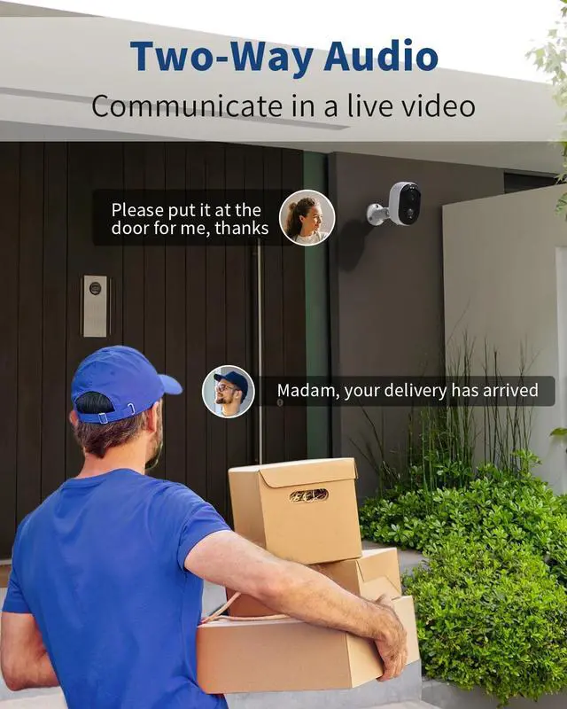 There are two options for full color night vision and infrared night vision. With 2 PIR led and 2 white lights, you can see amazing night vision even in dim light. ^^ PIR/AI Motion Detection & Real-time Alarm NotificationThe security camera outdoor utilize highly efficient PIR motion detection technology to monitor activity in your home in real time. Powered by advanced AI technology, they intelligently analyze captured footage and distinguish between people, pets, packages and vehicles. Receive real-time alerts on your smartphone to ensure you receive timely and accurate notifications while avoiding false alarms.