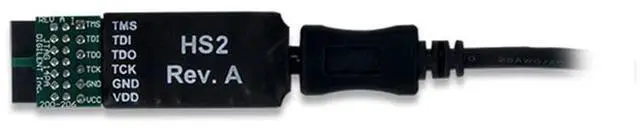 The joint test action group (JTAG) HS2 programming cable is a high-speedprogramming solution for Xilinx field-programmable gate arrays (FPGAs). The cable is fully compatible will all Xilinx tools and can be seamlesslydriven from iMPACT, ChipScope, and EDK. The HS2 attaches to target boardsusing Digilent's 6-pin, 100-mil spaced programming header or Xilinx's 2x7, 2mm connector and the included adaptor. The PC powers the JTAG-HS2 throughthe USB port and will recognize it as a Digilent programming cable whenconnected to a PC, even if the cable is not attached to the target board. The HS2 has a separate Vdd pin to supply the JTAG signal buffers.