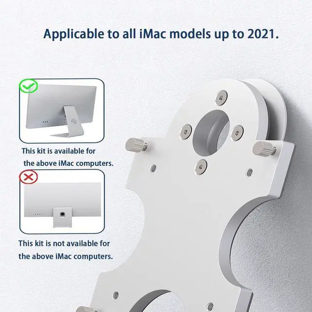 1. VESA Adapter - Please check your monitor model before ordering - We offer two types of stand kits for 24 M1 and M3 iMac series monitors and pre-2021 imac monitors. Please check your monitor model. ^^ 2. Made of sturdy aircraft aluminum. ^^ 3. Secures the monitor to the monitor stand. ^^ 4. This adapter is designed for the M1 and M3 iMac series models listed above and provides a mounting solution for displays without VESA holes. It is compatible with standard 75x75mm and 100x100mm VESA mounts. ^^ 5.