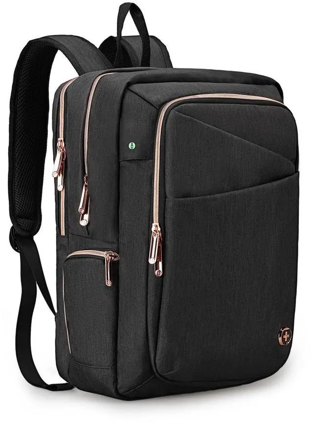 COMMUTER PICKSThis 23l compact business size backpack ( 1.79 lbs, 16H x 11W x 7D) keeps you organized with 4 separate large & several small compartments. Ideal for daily commuters carrying a 15.6 laptop, a tablet, textbooks, 2-3 pcs of clothes, bottle, wallet, keys and powerbank, and other daily essentials, not for overnight load. ^^ STYLISH PROTECTION Women backpack made with high quality materials and Swiss Design to provide both style and protection for your belongings. The velvet lined sunglass pocket gives your sunglasses comfort and protection.